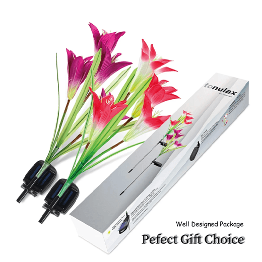 ★★★[COLOR CHANGING LIGHT]Lily shaped stake light with 7 color-changing. Lily solar lights automatically lights up in the dark to illuminate your garden and pathway. Perfect as path lights and in-ground lights Suitable for the Garden, Trees, Flowers, Flowerbed, Fence, Walkway